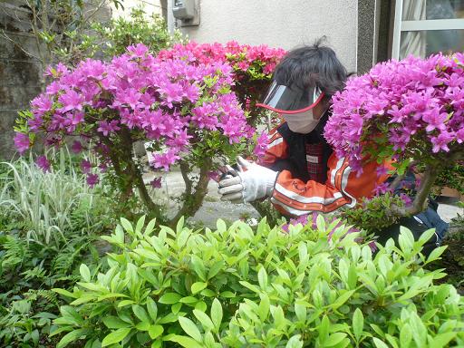 お母さんは枝を切る