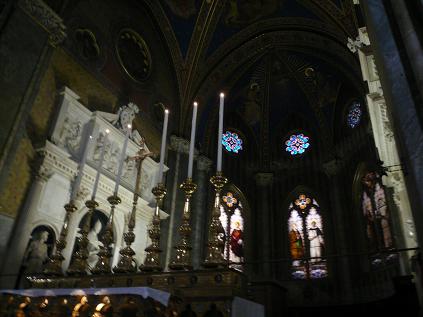 他の教会よりも外からの光が少なく、