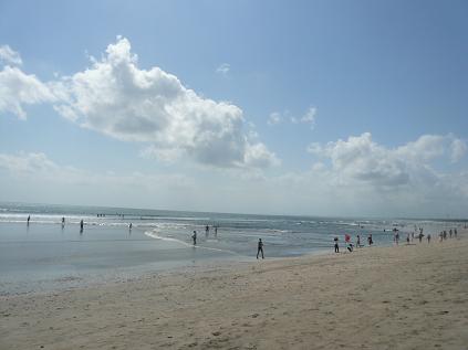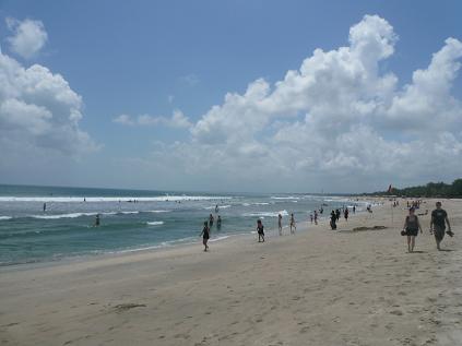 )クタビーチは波が高く、たくさんの人達がサーフィンをしている