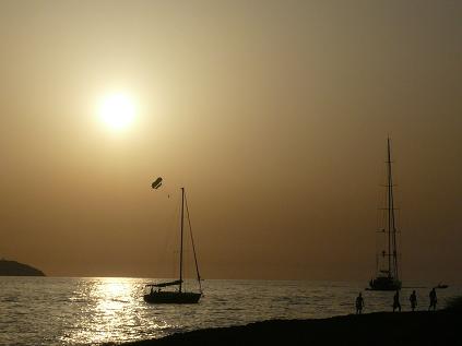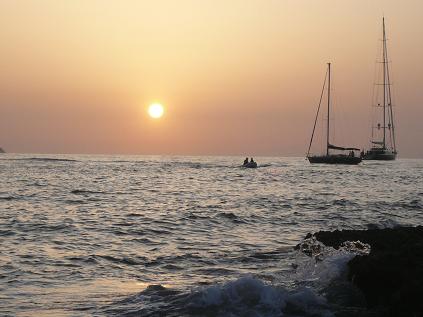 1度ホテルへ戻り、イビサタウンの港へ(夜は酒場と化す)>>>