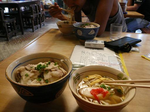 豚丼とミニソーキそばのセットで500円也!