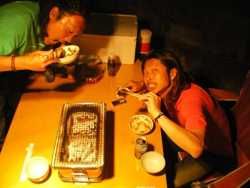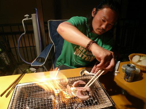 炭火焼肉ぅ~ (この日に限って結構強風・・・)