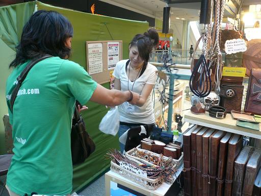 皮のアクセサリーを「大阪のおもいでやっ!」